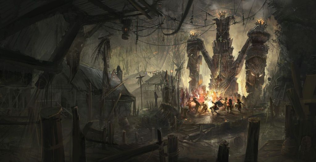 Excited, Legrasse tells his tale. His precinct knew of a place in the swamps of Louisiana where squatters and voodoo practitioners liked to occupy. They generally stayed clear of the “…black haunted woods where no dweller ventured...” but there were reports of women and children missing in the area, and speculation that a voodoo cult was behind it. They heard there was going to be a big voodoo meeting so Legrasse compiled a force of twenty policemen to head down to the swamps to break up this cult meeting. This group of cultists used the same chant as Professor Webb had heard in Greenland, but something horribly unique happened down in those swamps. In a natural glade, “...leaped and twisted a more indescribable horde of human abnormality than any but a Sime or an Angarola could paint.” These monstrous creatures danced around a “ring-shaped bonfire” which had an eight foot monolith in the center with the Cthulhu statuette on the top.