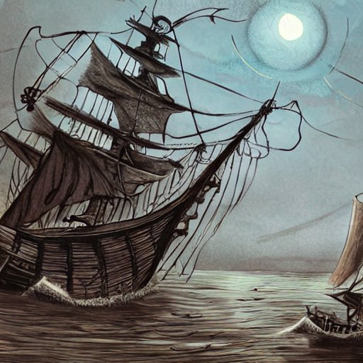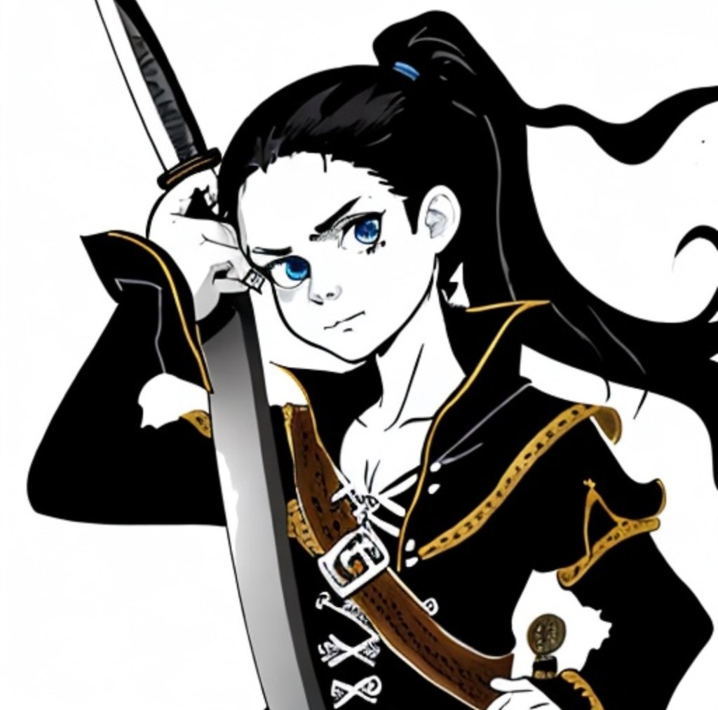 Excited, she flipped the cover open and saw an intricate drawing of a giant Pirate ship and a pirate with a pegleg and a large hat who held a sword in his hand.