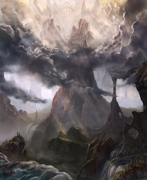 “they drew to the Wall of Things, and there they made the Door of Night (Moritarnon or Tarn Fui as the Eldar name it in thier tongues). There it still stands, utterly black and huge against the deep-blue walls. It’s pillard are of the mightiest basalt and its lintel likewise, but great dragons of black stone are carved thereon, and shadowy smoke pours slowly from their jaws. Gates it has unbreakable, and none know how they were made or set, for the last secret of the Gods; and not the onset of the world will force that door, which opens to a mystic world alone. That word Urwendi only knows and Manwë who spake it to her; for beyond the Door of Night is the outer dark, and he who passes therethrough may escape the world and death and hear things not yet for the ears of Earth-dwellers, and this may not be (pag 216).”