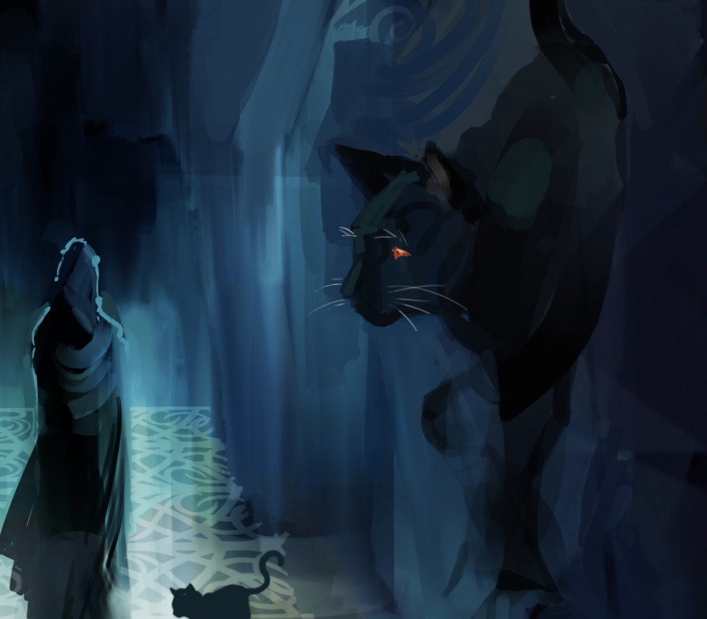 But alas, they sought the Foalókë and were caught in his glamor: “‘Seek not to cajole me, woman,’ sneered that evil one. ‘Liever would I keep they daughter and slay thee or send thee back to thy hovels, but I have need of neither of you.’ With those words, he opened full his evil eyes, and a light shone in them, and Mavwin and Nienóri quaked beneath them, and a swoon came upon their minds, and them seemed that they groped in endless tunnels of darkness, and there they found not one another ever again, and calling only vain echoes answered, and there was no glimmer of light (pg 99).”