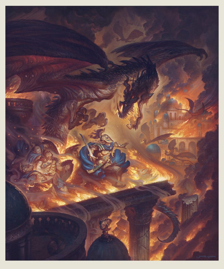 Orodreth tried to speak against fighting against Melko’s armies, regretting his creation of the Wand of Death, but Túrin was both craving war and trying to atone for his past indiscretions, so he went out and fought every agent of Melko he could find. He became infamous, and it did not go past Melko’s sight. Melko released a great army, “and a great worm was with them whose scales were polished bronze and whose breath was a mingled fire and smoke, and his name was Glorund (pg 84).”