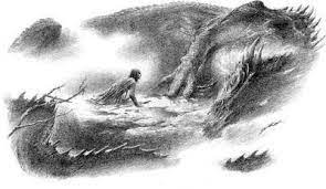 Oof. This passage is probably as close to horror as anything in Tolkien. The dragon has put their minds in a cage, and mother and daughter never see each other again. They don’t recognize each other, and this transcends into the rest of the story. We follow Nienóri as she leaves and ends up living with wood rangers. In the woods, “she seemed to herself to awake from dreams of horror nor could she recall them, but their dread hung dark behind her mind, and her memory of all past things was dimmed (pg 99).”