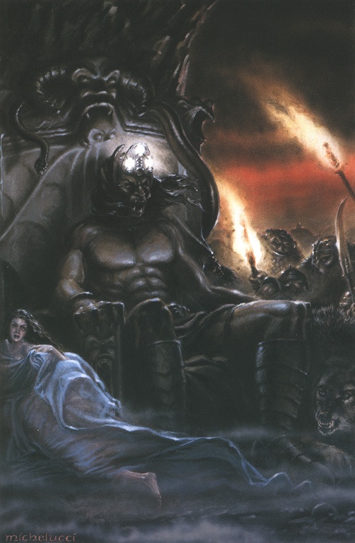 But alas, they sought the Foalókë and were caught in his glamor: “‘Seek not to cajole me, woman,’ sneered that evil one. ‘Liever would I keep they daughter and slay thee or send thee back to thy hovels, but I have need of neither of you.’ With those words, he opened full his evil eyes, and a light shone in them, and Mavwin and Nienóri quaked beneath them, and a swoon came upon their minds, and them seemed that they groped in endless tunnels of darkness, and there they found not one another ever again, and calling only vain echoes answered, and there was no glimmer of light (pg 99).”