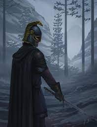 “Now then Orodreth let fashion for him a great sword, and it was made by magic to be utterly black save it’s edges, and those were shining bright and sharp as but Gnome steel may be. Heavy it was, and was sheathed in black, and it hung from a sable belt, and Túrin named it Gurtholfin the Wand of Death; and often that blade lept in his hand of its own lust, and it is said that at times it spake dark words to him (pg 83).”