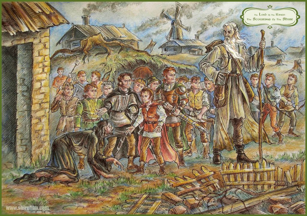 This event is the first time in all the books that the Hobbits take on enemies and fight them head-on without help. All of their experiences leading up to this make them able to be self-sufficient beings, even in the face of such a ruthless character as Saruman. The metaphor here is that they are finally grown, no longer children now that they are back from war, and aren’t putting up with anyone’s crap.