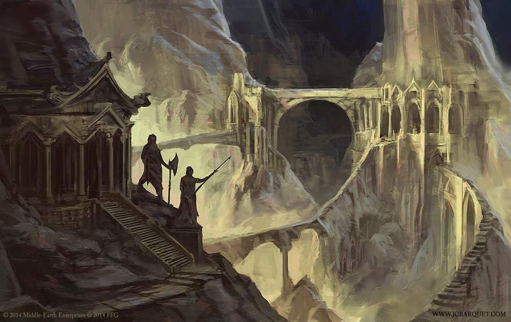 Aulë had promised the Dwarves they would sit at the End of the World with the Children of Ilùvatar, led by the Seven Father’s of Dwarves, “of whom Durin was the most renowned in after ages, father of that kindred most friendly to the Elves, whose mansions were at Khazad-dûm.” In case you don’t recognize this name from either the books or the movies, the better known name for Khazad-dûm is The Mines of Moria.