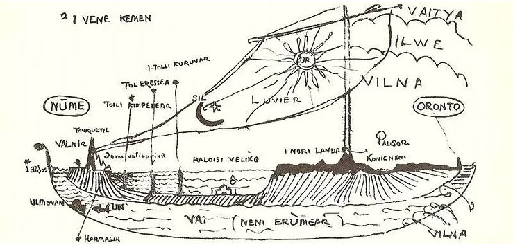 Tolkien initially wanted these stories to flow into one another with a central story hub (think Ray Bradbury’s The Illustrated Man) because he was worried that people would not be interested in the dry history of a land that didn’t exist. To tell this tale in a “Hobbit” style might make it more accessible to the everyday reader. However, he ran into the problem of how to make it work. He knew who Eriol was, and there were plans for him (which I believe will come to light in the last chapter of The Book of Lost Tales, part 2), but how does he get the surrounding characters into the work? The people who tell the tale? Well, he created things like Olórë Mallë, a sleep bridge that can get men (and only men apparently, as no Elves needed it because of their immortality) to different areas of space and time. He also created spaceships (literally ships that could sail across the sky) but decided to limit that to elevate a single character, Eärendil, to a godlike being as he sails his ship Vingilot across the sky.